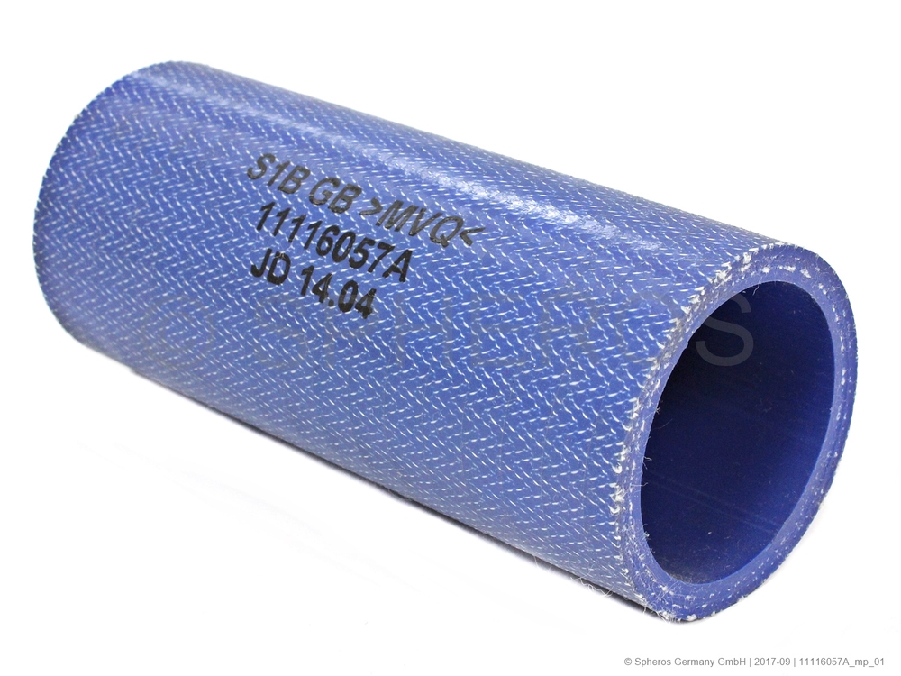 L110 / ⌀i 38 Wall thickness=4,5 Radius of curvature = none straight material Silicone blue acc. MAN Standard 334 Fire protection rail acc. DIN 5510 (mm)